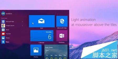 开始菜单和开始屏幕都在这则概念视频中被改进了,它们被增加了鼠标悬浮的全新视觉效果,而任务栏现在也可以定制透明度了;与此同时,当你把鼠标悬浮在其他图标上时,它们也会显示类似的效果。