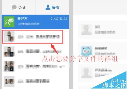 4。点击分享后,我们就能进入我们的群组列表和好友列表,如果我们要分享文件,首先点击我们要分享文件的群组。