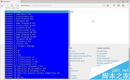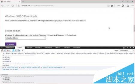 路饭讯 为了方便Win7、Win8.1老用户升级Win10,微软推出了Tech Bench升级计划,并在官方网站中提供了Windows10系统的ISO镜像下载,但如果用户升级Win10出现了问题,想重新安装之前的版本就有点麻烦了。其实在Tech Bench中微软同样提供了Win7、Win8.1等旧版本镜像下载(确切说是服务器中同样存在这些镜像),只不过在Tech Bench页面的Option下拉式选择表单中没有列出这些旧版本镜像。