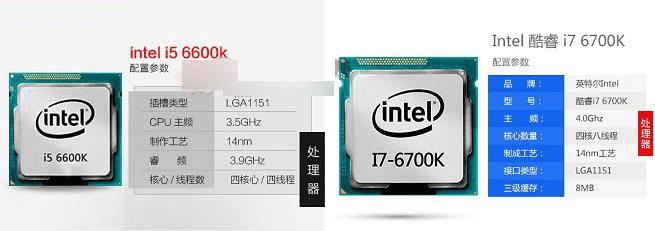 两款产品均支持用户通过调整外频及倍频来对处理器进行超频,以上是i5-6600K与i7-6700K参数对比,如图。