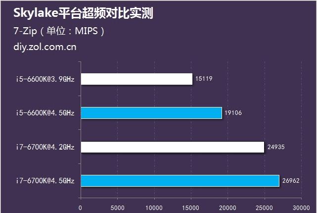 i5-6600K/i7-6700K超频7-ZiP压缩软件性能测试成绩对