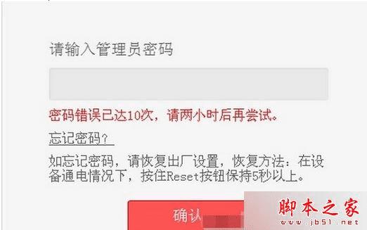 win7在登录路由器输错密码多次提示“密码错误已达10次,请两小时后再尝试”,具体问题现象如下所示: