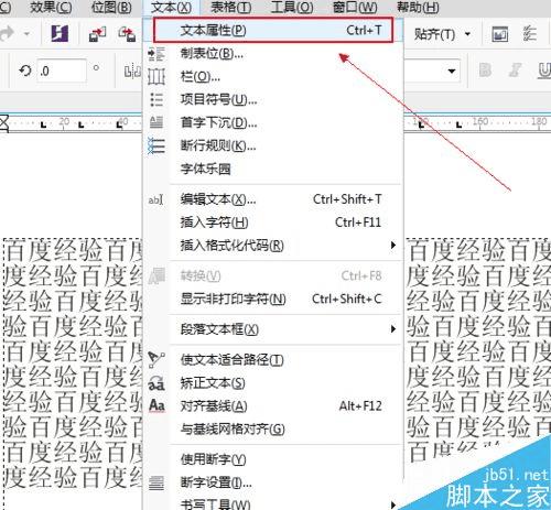 如图所示,在弹出的下拉列表菜单中,我们点击箭头所指的“文本属性(P)”这一项。