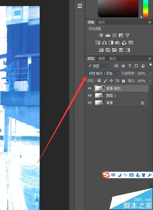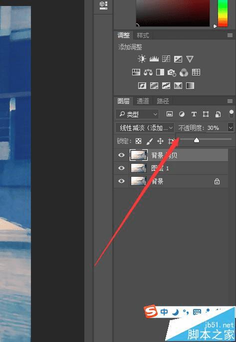 4、把这个绘画涂抹图层设置成线性减淡,并根据效果调整图层透明度