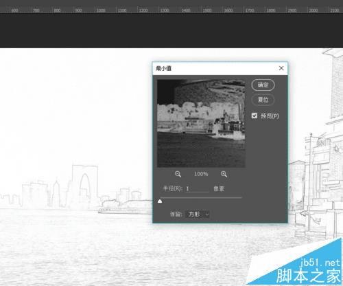 5、这时候按ctrl+j复制背景层,ctrl+shift+u 去色,ctrl+j复制一层,图层属性改为线性减淡;ctrl+i反相,滤镜-其他-最小值,ctrl+e向下合并,调整图层属性为正片叠底。