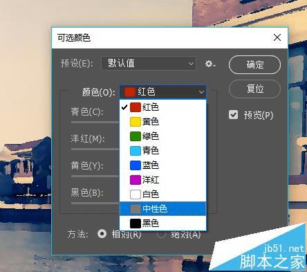 6、刚才干画笔滤镜效果那个图层,根据照片调整一下整体的色调,图像-调整=可选颜色,选择中性色和白色调整