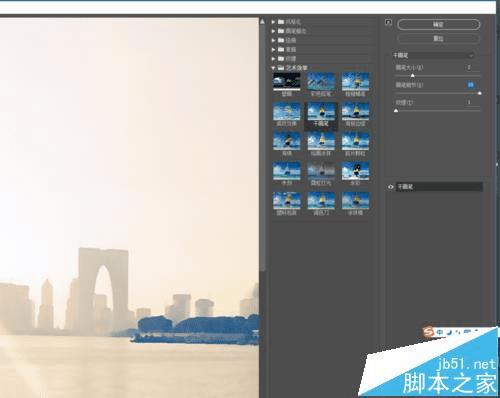 2、然后在用这个图层添加滤镜-滤镜库-干画笔效果,点击确定