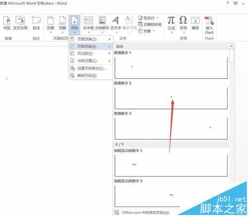 5、点击【页码】下拉菜单中的【页面底端】,选择需要的页码显示方式,我们选择【普通数字2】