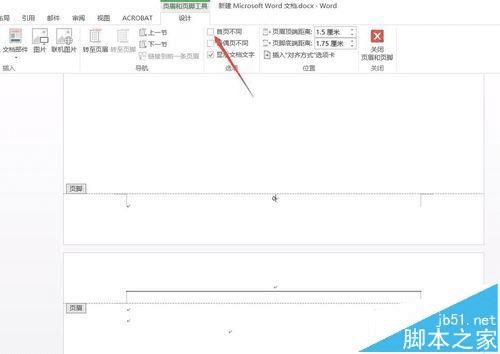 6、此时跳出如下界面,勾丫设计】选项卡中的【首页不同】。
