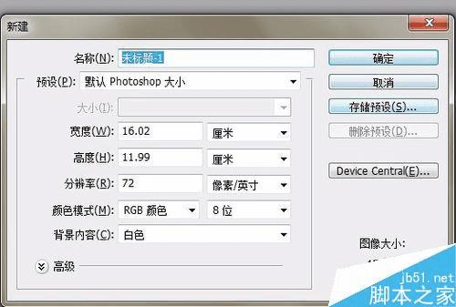 在弹出的对话框中,输入名称,大小,像素等,最后单击“确定”,新建一个2寸照片大校