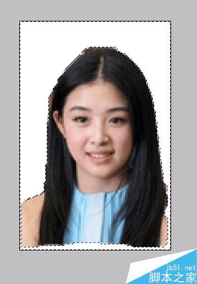 使用磁性套索工具选中照片人物,单击“选择”“反向”按钮,按delete键,删除周围图片。