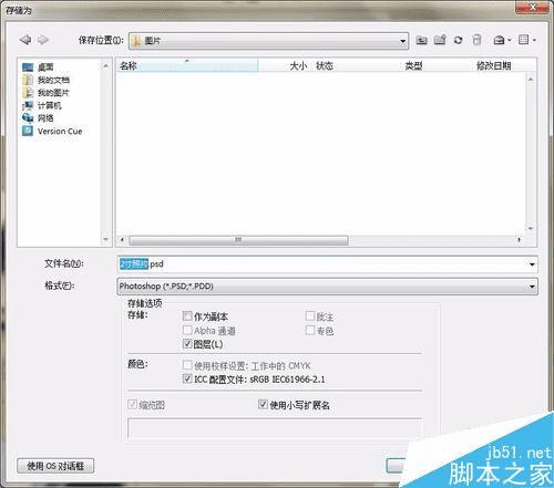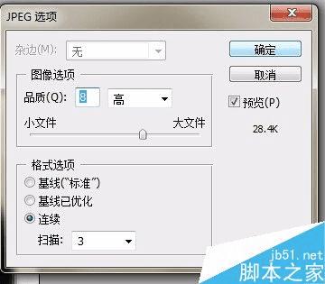 单击“文件”“存储为”命令,弹出对话框,设置jpeg格式,单击“确定”按钮,弹出对话框,单击确定即可。