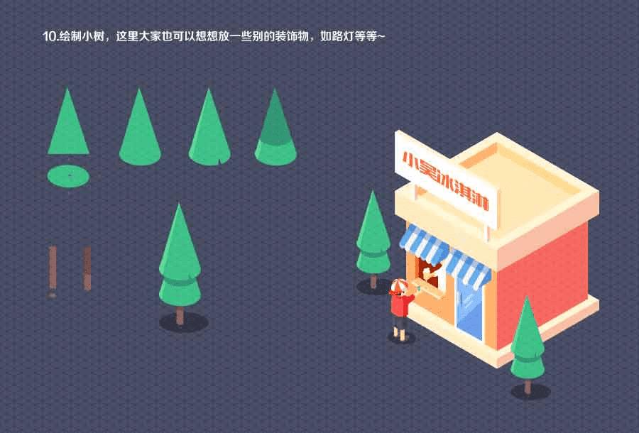 教程结束,以上就是PS鼠绘卡通立体的冰淇淋小卖部方法介绍,大家喜欢吗?感兴趣的朋友可以自己动手制作一个哦!