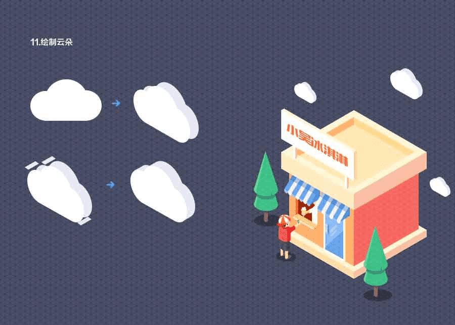 怎么样使用PS鼠绘卡通立体的小卖部?