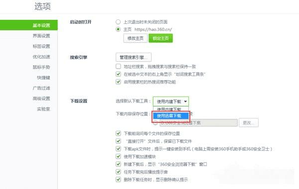 在Win10系统中将迅雷设为360浏览器默认下载工具的方法