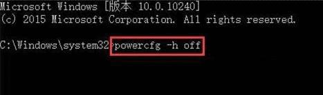 2、在命令提示符框中输入:powercfg -h off 按下回车键即可。