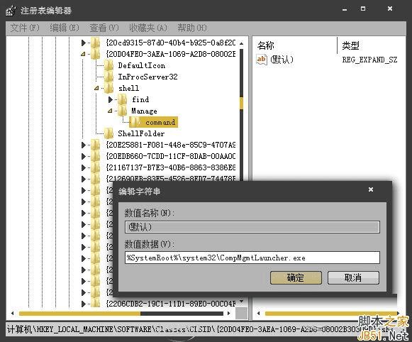 [HKEY_LOCAL_MACHINE\SOFTWARE\Classes\CLSID\{20D04FE0-3AEA-1069-A2D8-08002B30309D}\shell\\Manage\\command]