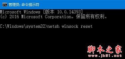 2、在弹出的框中输入:netsh winsock reset 按下回车键;