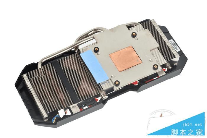耕升GTX 1060暴风版配备了两根6mm和一跟8mm的散热铜管,并且采用了铜底和GPU接触,并且在铜底周围预留了显存散热的位置,这样一来GPU和显存的散热都照顾上了。