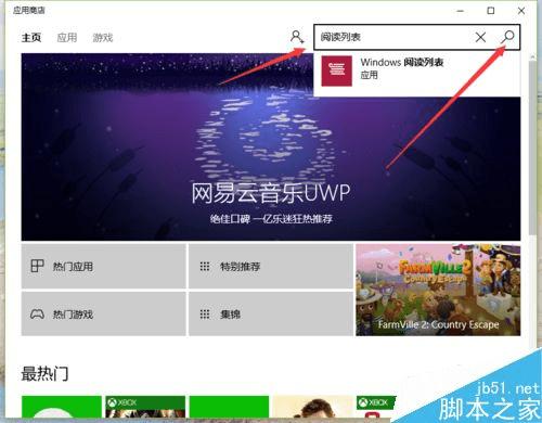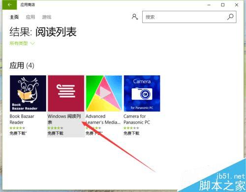 3、在应用商店窗口中,在搜索框中输入“阅读列表”并点击搜索按钮。如图所示