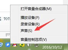 1、首先我们在桌面的右下角任务栏中找到小喇叭(声音图标),在小喇叭上右键,然后点击声音;