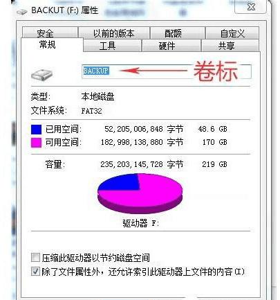3、接着,如果驱动器有卷标,系统会要求你输入磁盘的卷标,然后回车;补充:查看卷标:右击磁盘→属性→常规。