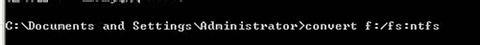 例:convert f:/fs:ntfs 把F盘转换为NTFS格式