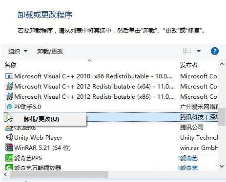 2、在需要卸载的程序上单击右键,选择“更改/卸载”将其卸载掉;