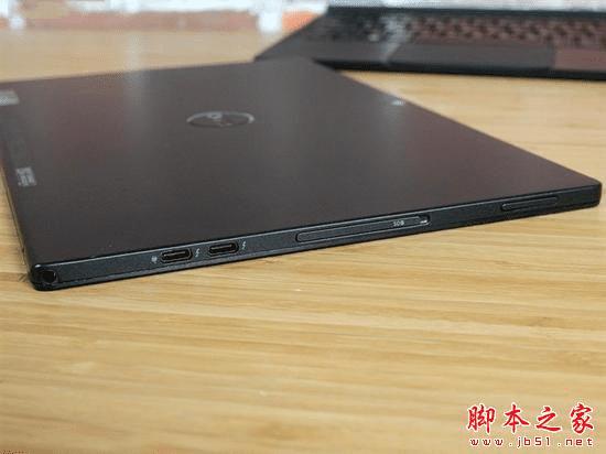 机身右侧,拥有电源开机按键和安全锁孔。综合来看,XPS 12提供了双USB Type C接口和一个Micro SD卡插槽,其中两个USB Type C接口支持雷电3标准,即:支持雷电3的设备最大40Gbps,USB 3.1最大10Gbps。但是要想连接HDMI、DP、VGA显示设备,传统USB设备的U盘、移动硬盘还需要转接头,现阶段采用USB Type C的设备还较少,便捷性还不能体现出来,使用过程也会稍加繁琐。