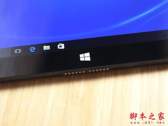 平板部分机身下方拥有一颗Windows触控按键,该按键还会伴随着一个反馈十足的震动,在使用时可以明显感知是否有触碰到此按键。此外,机身下方还拥有一排金属触点,用来连接键盘底座。