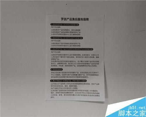 打开包装盒取出所有的配件,只有产品合格证、产品使用说明、产品售后服务指南,由于是有线键盘,所以配套的配件就比较少。