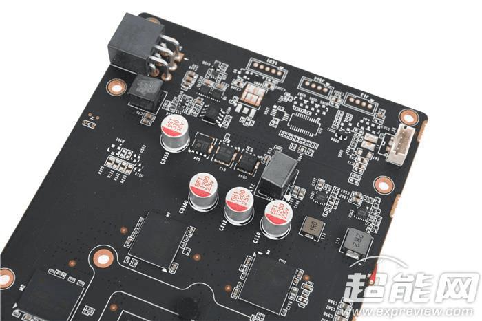 采用4+1相供电设计,索泰标志性AIO电感,一上两下MosFET管上覆盖有铝制散热鳍片。