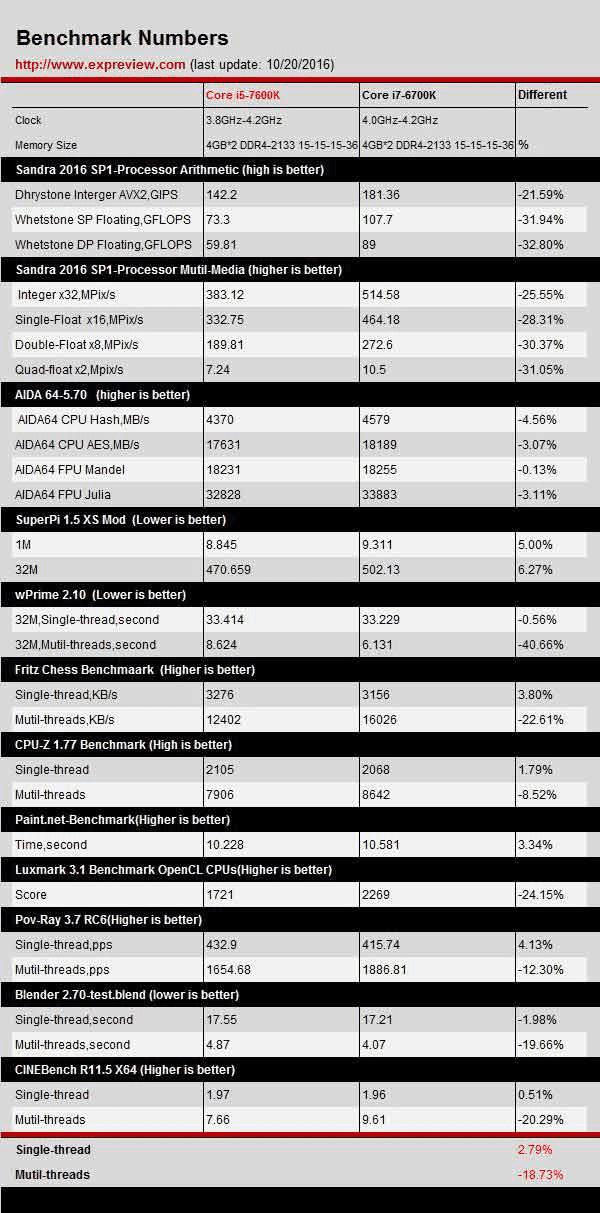 Core i5-7600K vs. Core i7-6700K