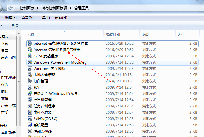开启完成以后,到控制面板找到管理工具,这时就能找到IIS管理了。