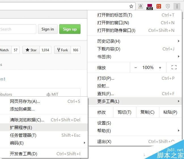 下载完毕后解压备用,打开Chrome浏览器,点击右上方菜单按钮(纵向三个小点),找到菜单页中“更多工具”项的“”“扩展程序”。