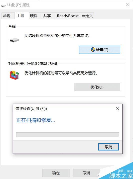 如果U盘存在错误,系统会出现提示,注意,这时候也仅仅将错误的文件链接修复,并不能真正修复U盘。这时候还要退回倒我的电脑,右键单击磁盘选择属性,在工具项中选择“检查”执行修复工作。