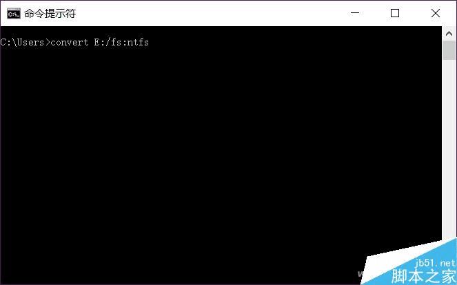 在命令行模式下输入convert E:/fs:ntfs回车,注意中间空格,同时,E是小编电脑上的U盘盘符,要根据自己的盘符进行修改。