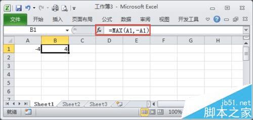 让该数与其负数比大小求出绝对值,公式如下,=MAX(A1,-A1),如下图所示。由于任意一个数,无非就是正数、负数、0。