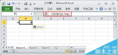 让该数乘以该数的符号求出绝对值,公式如下:=SIGN(A1)*A1,如下图所示