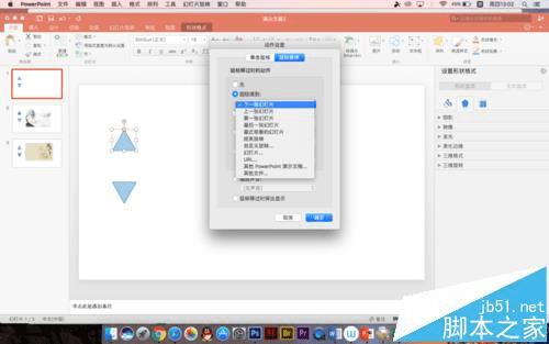 7、回到第一张幻灯片,右击按钮会出现操作设置,点击,右边栏是经过时显示,所以换到右边