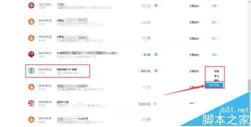 3、在交易记录列表里找到需要获取电子回单的交易条目,然后从右侧的菜单列表中选择“电子回单”。