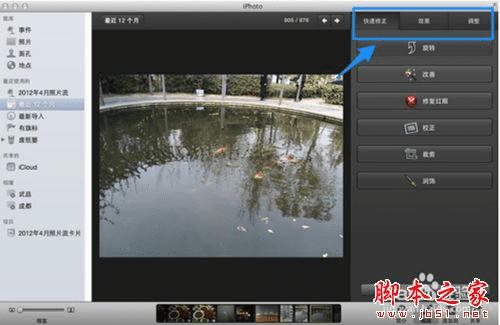 相片的编辑分为三大功能,快速修正,效果和调整,可根据自己的需要来选择相应的功能,对照片进行编辑