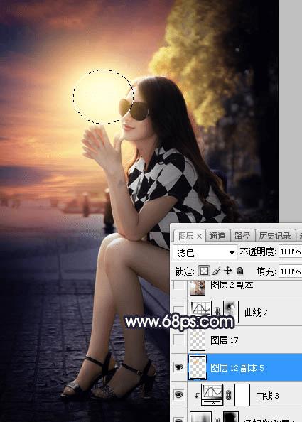 怎么样能够在Photoshop中调制出唯美的秋季霞光色花坛人物图片?(6) 来源:www.45fan.com 2016-12-06 18:58:04 20、用自己熟悉的方法把图片底部及右侧部分压暗一点,如下图。 <图30> 21、新建一个图层,用椭圆选框工具 拉出下图所示的选区,羽化35个像素后填充橙黄色:#FFB03F,取消选区后把混合模式改为“滤色”,效果如下图。这一步给图片局部增加高光。 <图31> 22、新建一个图层,给高光区域增加一个光晕,效果如下图。 <图32> 最后把图片暗部压暗一点,微调一下颜色,完成最终效果。 共6页: 上一页123456下一页 推荐阅读 怎么样在Photoshop中制作唯美的花样仿手 怎么样能够在ps中绘制可爱立体风格的哆啦 如何在ps中合成唯美梦幻主题风格的猫咪场 如何能够在ps中合成唯美朦胧月夜渔舟轻荡 怎么样在ps中制作玉米网页按钮? 在ps中调制出唯美的秋季晨曦逆光树林人物 如何能够在Photoshop中调出甜美日系暖色 如何在Photoshop中给灰蒙蒙逆光的风景调 如何在Photoshop中将秋季树林人物图片打 怎么样在Photoshop中使用通道抠出人美女