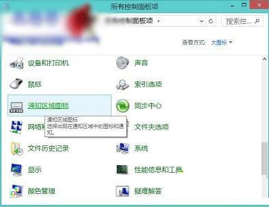 1、打开控制面板,点击选择里面的“通知区域图标”。