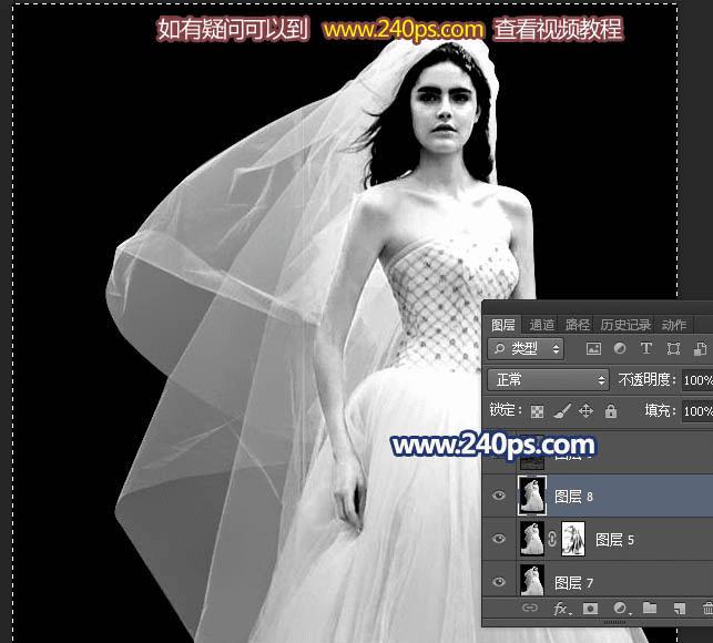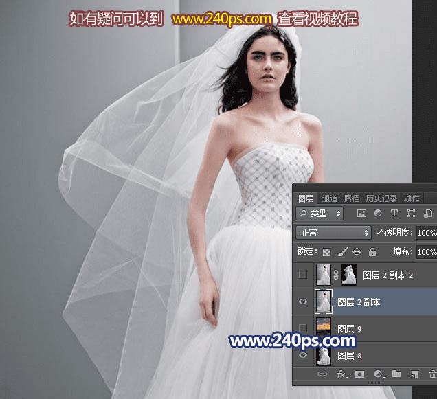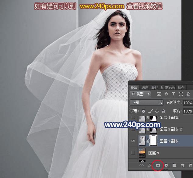 使用Photoshop抠出室内有折痕的婚纱换背景的方法(4) 来源:www.45fan.com 2017-02-01 09:58:39 19、把背景图层复制一层,按Ctrl + Shift + ] 置顶,如下图。 20、添加图层蒙版。 21、按住Alt键 + 鼠标左键点击蒙版缩略图,得到蒙版效果,这一步如果不明白可以到240ps.com视频栏目观看视频教程。 22、按Ctrl + V 粘贴,然后按住Alt键 + 鼠标左键点击蒙版,效果如下图。 23、打开背景素材,用移动工具拖到当前图层的下面,如下图。 共5页: 上一页12345下一页 推荐阅读 使用ps制作华丽的复古金边花纹字的方法 怎么样使用Photoshop快速修正灰蒙蒙雾霾 使用Photoshop合成清新超自然的可乐海报 在ps中制作立体按钮的方法 如何能够在ps中将树林人物图片打造魔幻的 在ps中将树林人物图片蓝色造出梦幻的暗调 在ps中调出日系暖黄色效果的外景美女照片 如何在ps中调制出紫色霞光草坪上人物图片 怎么样使用Photoshop多边形套索工具进行 怎么样在ps中使用滤镜工具抠出美女人像头