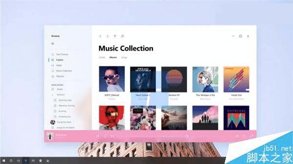 另外在Groove音乐中,背景模糊和应用内模糊也巧妙出现,如动图所示,歌手档案图的变化——