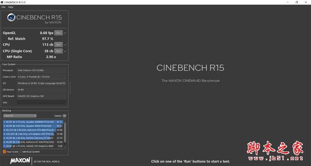 CINEBENCHR15测试成绩