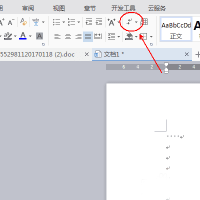4、但是当我们再次点击“显示/隐藏段落标记”时,我们会发现我们的空格变成了点点点