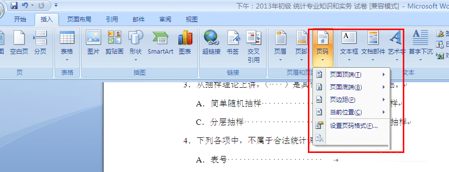 6、如果不想用简单的阿拉伯数字做页码,点击设置页码格式。