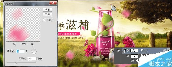 最后为了烘托热闹的氛围在画面中添加了一些飘零的花瓣碎片。给花瓣添加动感模糊根据虚实关系调整模糊范围。
